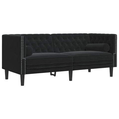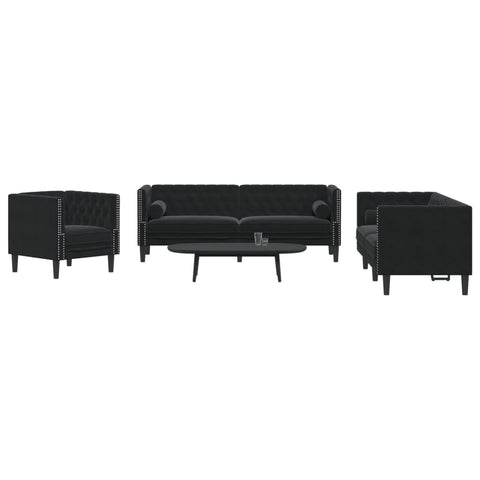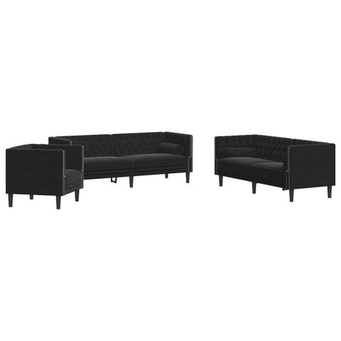 3-tlg. Chesterfield-Sofa-Set mit Nackenrollen Schwarz Samt