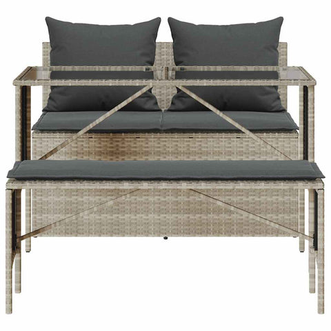 3-tlg. Garten-Essgruppe mit Kissen Hellgrau Poly Rattan