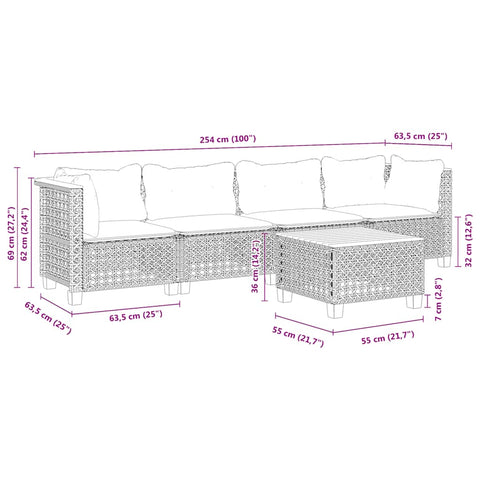 5-tlg. Garten-Sofagarnitur mit Kissen Beige Poly Rattan