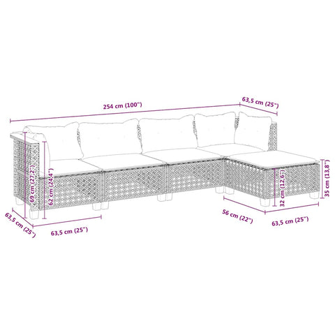 5-tlg. Garten-Sofagarnitur mit Kissen Beige Poly Rattan