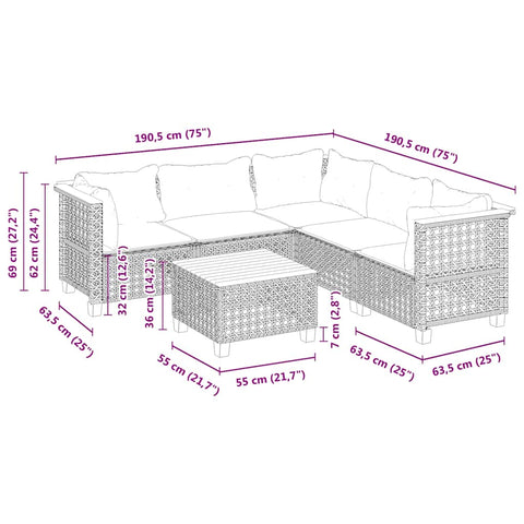 6-tlg. Garten-Sofagarnitur mit Kissen Beige Poly Rattan