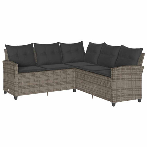 6-tlg. Garten-Sofagarnitur mit Kissen L-Form Grau Poly Rattan