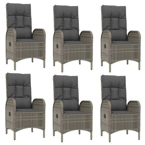 7-tlg. Garten-Essgruppe mit Kissen Grau Poly Rattan