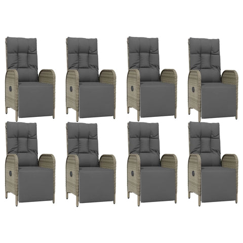 9-tlg. Garten-Essgruppe mit Kissen Grau Poly Rattan