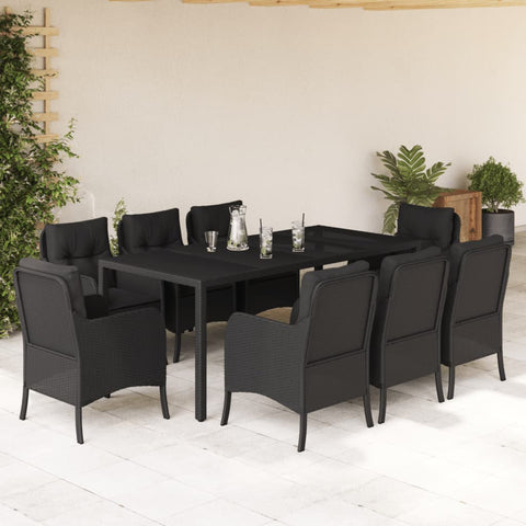 9-tlg. Garten-Essgruppe mit Kissen Schwarz Poly Rattan