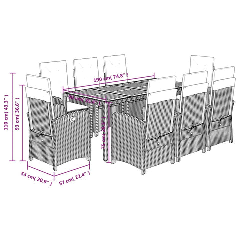 9-tlg. Garten-Essgruppe mit Kissen Schwarz Poly Rattan