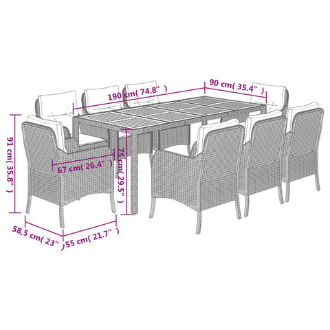 9-tlg. Garten-Essgruppe mit Kissen Schwarz Poly Rattan