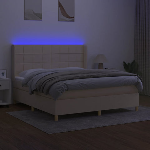 Boxspringbett mit Matratze & LED Creme 160x200 cm Stoff