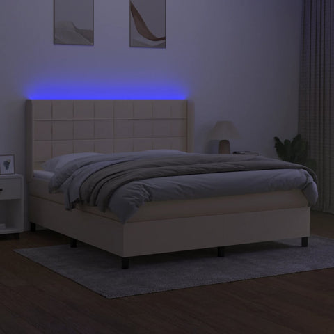 Boxspringbett mit Matratze & LED Creme 160x200 cm Stoff