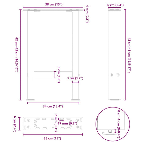 Couchtischbeine Naturstahl 2 Stk. 38x(42-43) cm Stahl