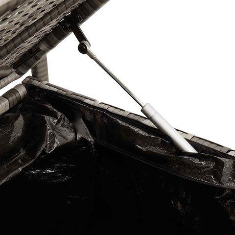 Diese Sitzbank bietet nicht nur eine bequeme Sitzgelegenheit im Außenbereich, sondern eignet sich auch perfekt, um Gartenkissen, Gartengeräte, Handtücher und andere Gegenstände ordentlich und griffbereit aufzubewahren.Langlebiges Material: PE-Rattan, auch als Poly Rattan bekannt, ist ein robustes, pflegeleichtes synthetisches Material, das die Optik von natürlichem Rattan aufweist. Es kennzeichnet sich durch ein geringes Eigengewicht und lässt sich einfach reinigen. Aufgrund seiner Haltbarkeit und Witterungsbeständigkeit wird es häufig bei der Herstellung von Gartenmöbeln verwendet.Stauraum: Der Gartenhocker verfügt über einen Stauraum an der Unterseite, der mit einem wasserfesten Beutel zur Aufbewahrung von Kissen, Spielzeug und anderen Gegenständen ausgestattet ist. Der innere Beutel kann mit Klettverschlüssen sicher am Sitz befestigt werden, was für Stabilität sorgt und Bewegungen verhindert.Sicheres und einfaches Öffnen und Schließen: Die Gasfeder erleichtert das Öffnen des Deckels und verhindert das Einklemmen der Finger.Bequemes Sitzerlebnis: Dieser Gartensessel mit dick gepolsterten Kissen bietet ein angenehmes Sitzgefühl.Abnehmbarer und waschbarer Bezug: Diese Sitzkissen verfügen über abnehmbare Bezüge für einfaches Waschen und Pflegen. Gut zu wissen:Wir empfehlen dir, deine Gartenmöbel mit einer wasserdichten Hülle zu schützen, um lange Zeit eine ansprechende Optik aufzuweisen.