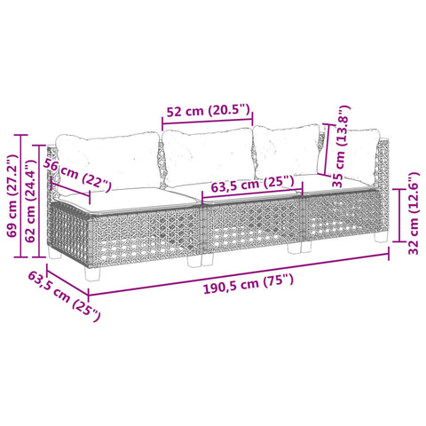 Gartensofa mit Kissen 3-Sitzer Beige Poly Rattan