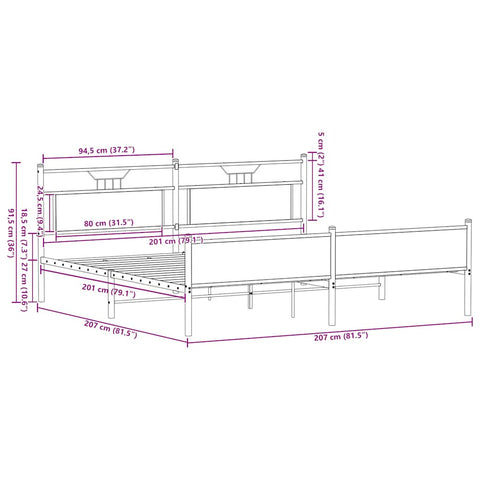 Metallbett ohne Matratze Braun Eichen-Optik 200x200 cm