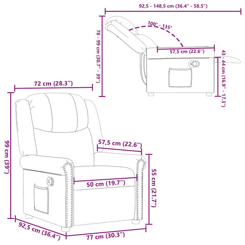 Lehne sich zurück und entspanne sich in diesem äußerst bequemen Relaxsessel! Manuelle Liegefunktion: Dieser Ruhesessel lässt sich mittels des Griffs an der rechten Seite verstellen. So kannst du das Fußteil und die Rückenlehne manuell in jede beliebige Position bringen, um höchsten Komfort zu genießen. Die Rückenlehne lässt sich max. 135 Grad nach hinten verstellen. Durch einfaches Ziehen lässt sie sich schnell wieder in die ursprüngliche Position bringen.Bequemes Sitzerlebnis: Der dick gepolsterte Sitz, die Rückenlehne und die breiten, mit Kunstleder bezogenen Armlehnen sorgen für ein behagliches und angenehmes Sitzgefühl. Es ist schmutzabweisend und lässt sich mit einem feuchten Tuch einfach reinigen. Durch die glatte Oberfläche weist es die luxuriöse Schönheit von Echtleder auf.Praktische Seitentasche: Dieser Sessel verfügt über eine Seitentasche, in der du wichtige Sachen griffbereit aufbewahren kannst.Solider und stabiler Rahmen: Der Rahmen aus Holz und Metall sorgt für eine solide Struktur und hohe Stabilität. Dieser TV-Sessel ist bequem und langlebig.