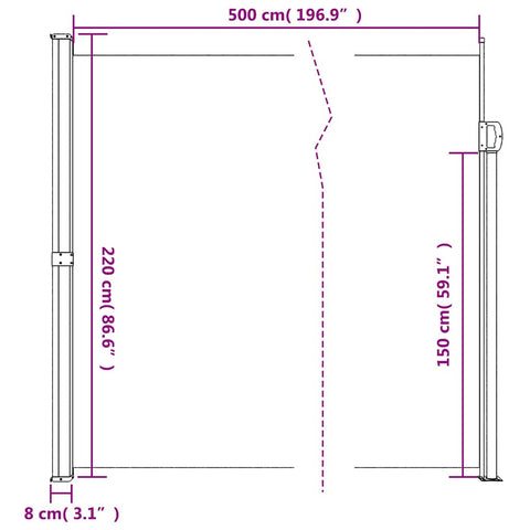 Seitenmarkise Ausziehbar Schwarz 220x500 cm