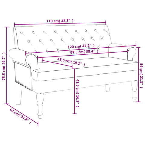 Sitzbank mit Rückenlehne Dunkelbraun 120x62x75,5 cm Stoff