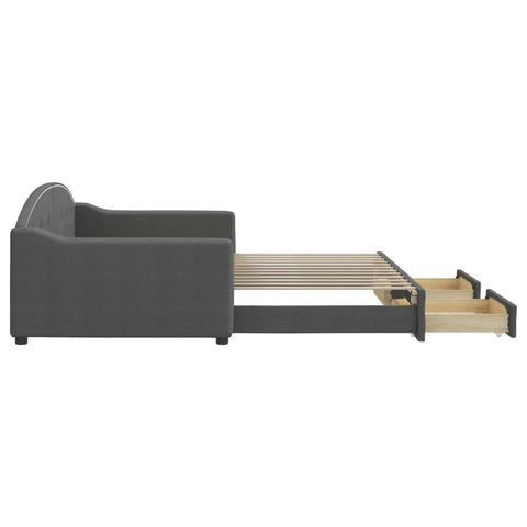 Tagesbett Ausziehbar mit Schubladen Dunkelgrau 100x200 cm Stoff