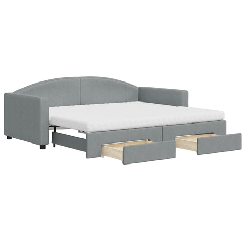 Tagesbett Ausziehbar mit Schubladen Hellgrau 90x190 cm Stoff