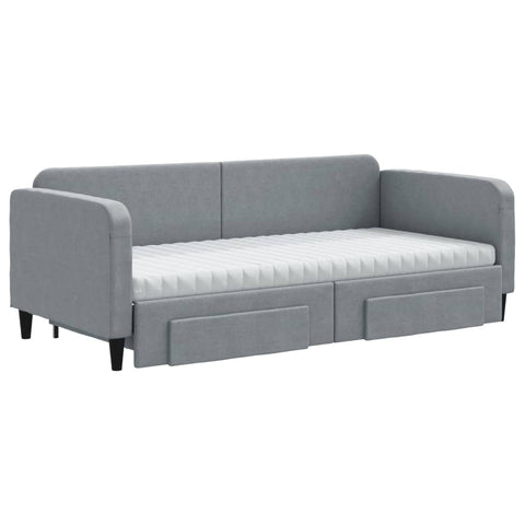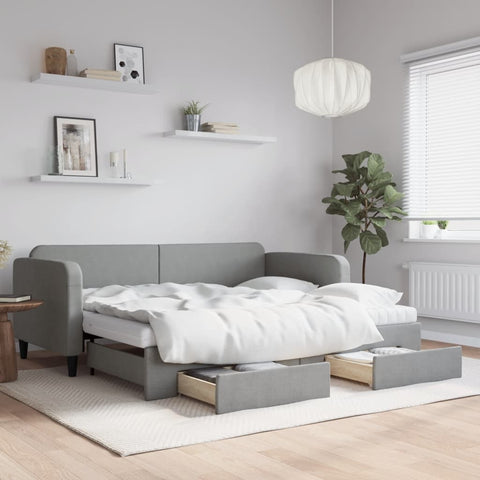 Tagesbett Ausziehbar mit Schubladen Hellgrau 90x190 cm Stoff