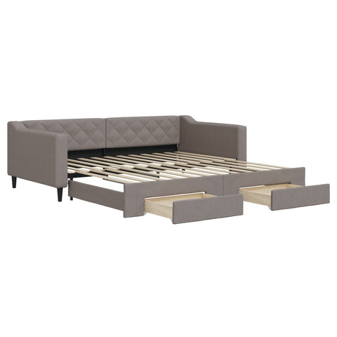 Tagesbett Ausziehbar mit Schubladen Taupe 100x200 cm Stoff