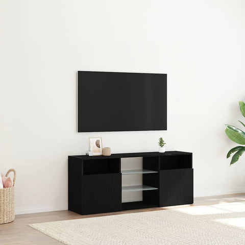TV-Schrank mit LED-Leuchten Schwarz Eichen-Optik 120x30x50 cm