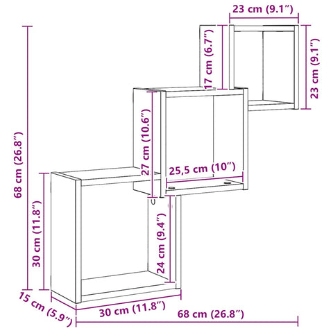 Würfelregale Schwarz Eichen-Optik 68x15x68 cm Holzwerkstoff